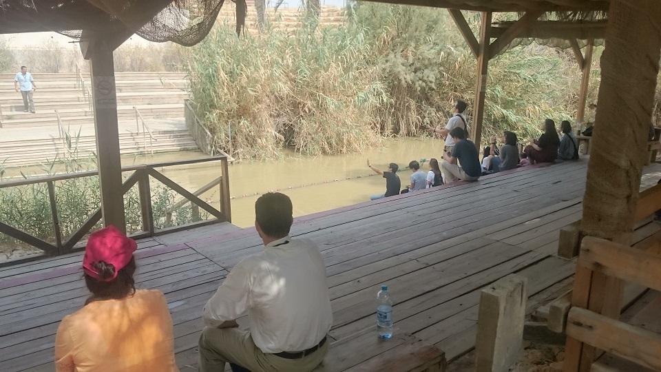 È una foto del viaggio di nozze che io e mia moglie abbiamo vissuto quest’estate in Giordania. A vederla così probabilmente non dice molto, in realtà racchiude tantissimo. Siamo al Sito del Battesimo, il luogo dove con ogni probabilità Giovanni il Battista predicava e Gesù venne battezzato. Il corso d’acqua che si vede è il Giordano. Di qua del fiume è Giordania, dall’altra sponda è Israele. Non si può passare da una parte all’altra del fiume. Non si può attraversare il confine. Chi arriva dalla parte giordana non può visitare il versante israeliano e viceversa. Rigidità che sono cicatrici di anni di tensioni e stato guerra tra i due paesi.