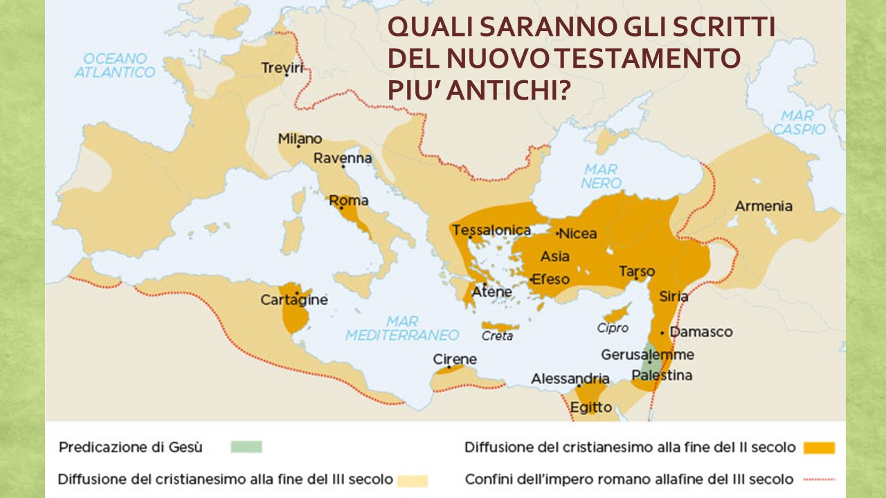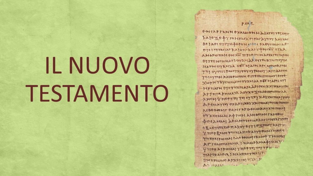 Per introdurre il Nuovo Testamento utilizzo alcune slide che ho preparato (scaricabili da qui). Qui di seguito riporto i contenuti a commento di ciascuna. Approfondisco le slide attraverso la lettura e il commento di alcuni passaggi dei testi neotestamentari e degli scritti apocrifi.