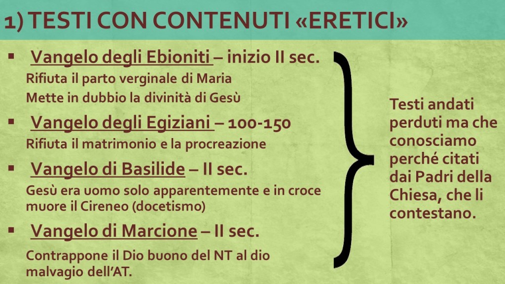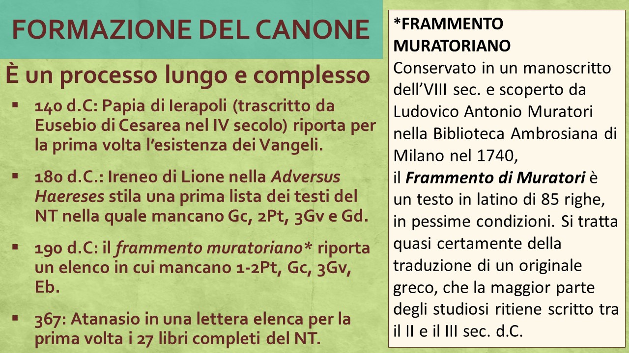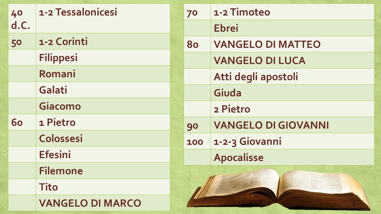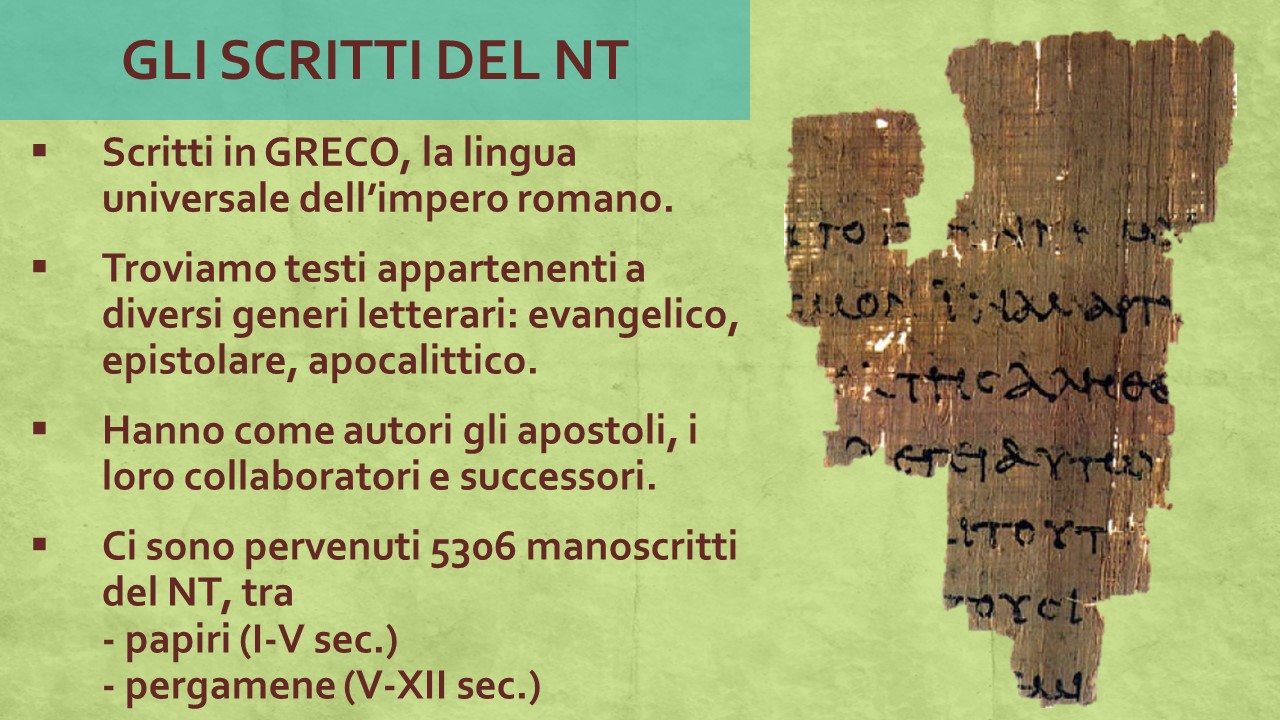OBBIETTIVI: conoscere le caratteristiche fondamentali dei testi del Nuovo Testamento, il percorso che ha portato alla definizione del Canone, i testi apocrifi.