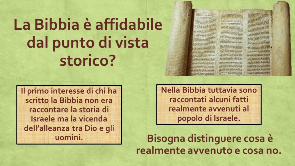 – Il primo riguarda una delle caratteristiche più importanti del testo biblico: la Bibbia non ci presenta un’unica immagine in sé coerente di Dio. Piuttosto troviamo in essa una polifonia di immagini, spesso in contraddizione tra loro: il Dio misericordioso e il Dio che comanda la guerra, il Dio punitore e il Dio che dona gratuitamente, il Dio giusto e il Dio sterminatore… Questo perché, semplificando, ciascun libro della Bibbia ci testimonia la particolare immagine di Dio che l’autore del testo ha inteso e crede. La Bibbia è scritta da uomini, non è dettata da Dio; per questo autori diversi descrivono immagini di Dio diverse. La Bibbia è la storia di ciò che progressivamente Israele ha compreso di Dio nella relazione con lui. L’immagine di Dio col tempo evolve, soprattutto a partire da ciò che al popolo di Israele accade nella storia. Quando la realtà smentisce ciò che si credeva di Dio, l’immagine di Dio evolve. Quando ad esempio emerge, nel libro di Giobbe, l’esperienza del dolore innocente, l’idea di un Dio che premia i buoni e castiga i cattivi, ampiamente professata in precedenza, va in crisi. È quello che succede anche nel nostro vissuto di fede: ci sono alcuni momenti della vita dove o la fede evolve, oppure finisce. La rivelazione di Dio non è dettata dall’alto, ma è riconoscibile nelle pieghe delle esperienze di fede dei testimoni, teologi e autori della Bibbia: Dio si rivela nella storia e attraverso la storia, guidando l’uomo verso una sempre più veritiera immagine di Sé.