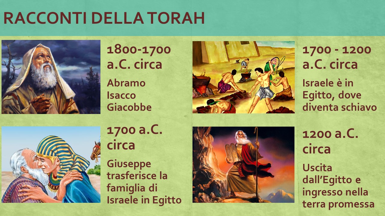 – La Torah (o Pentateuco): i primi cinque libri della Bibbia (Genesi, Esodo, Levitico, Numeri, Deuteronomio), che sono i testi fondanti per la religione ebraica (come i Vangeli per il cristianesimo).