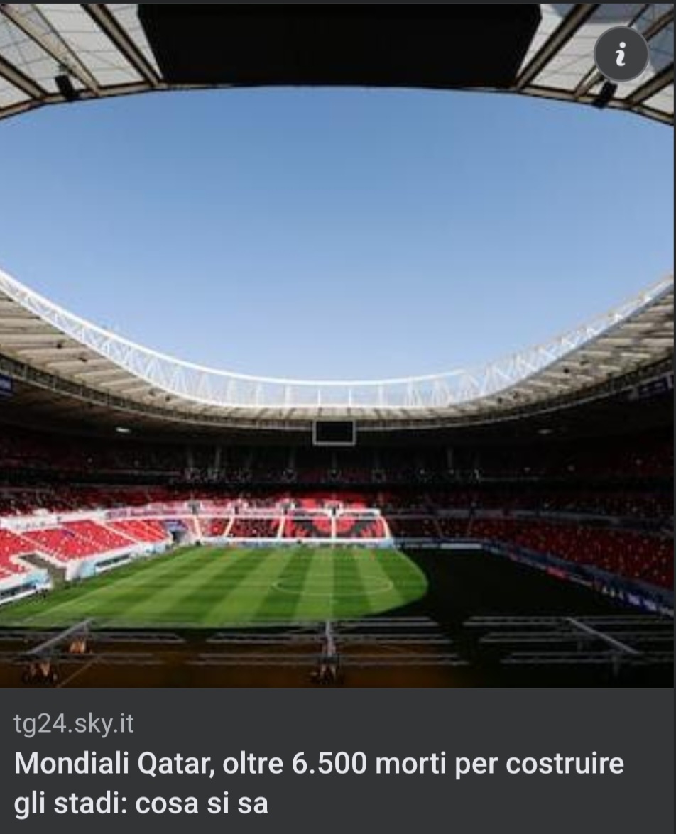 Mi impressiona che, per far sì che io oggi possa sedermi sul mio divano a guardare i mondiali, siano morte 6500 persone. È qualcosa di fronte alla quale mi sento totalmente impotente. Sarebbe facile lavarmi la coscienza scegliendo di boicottare le partite (tanto l’Italia non c’è…). Ma nessun boicottaggio riporterà in vita quelle persone.Forse questo…
